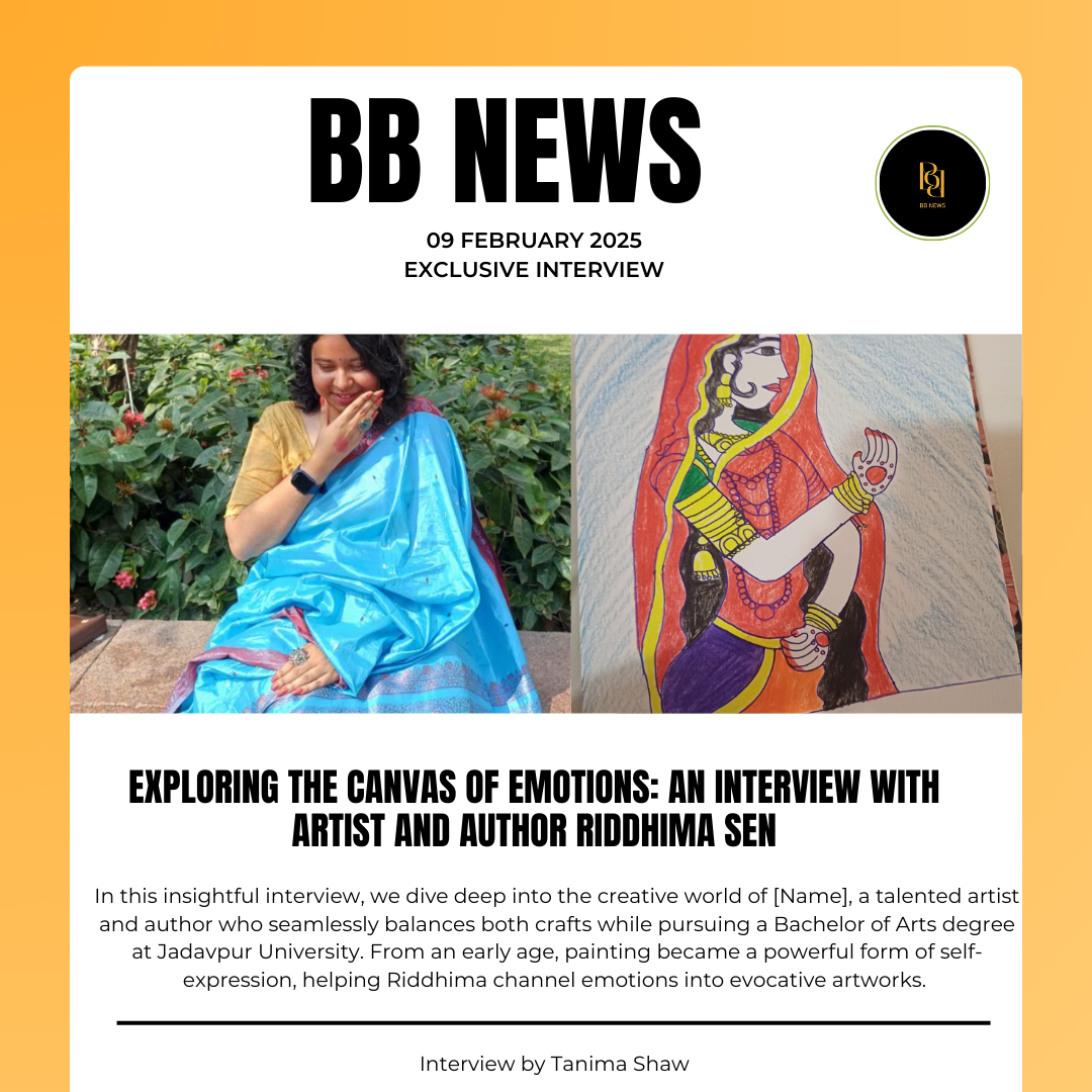 In this insightful interview, we dive deep into the creative world of Riddhima, a talented artist and author who seamlessly balances both crafts while pursuing a Bachelor of Arts degree at Jadavpur University. From an early age, painting became a powerful form of self-expression, helping Riddhima channel emotions into evocative artworks. The conversation uncovers the inspirations behind their unique pieces, their time management strategies, and how painting serves as both a personal outlet and a medium to connect with others. With plans for future works rooted in history and society, Riddhima shares a vision of art as an agent of change.