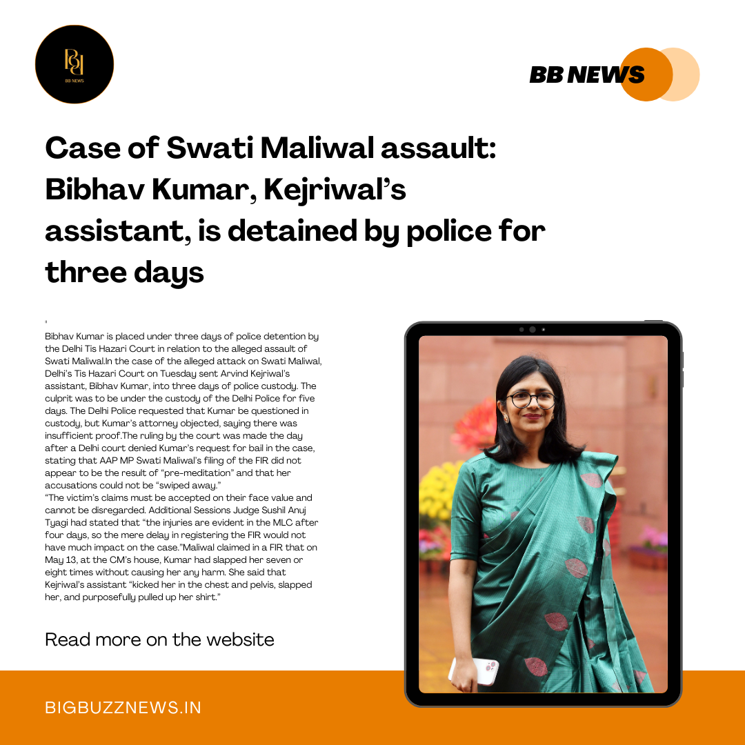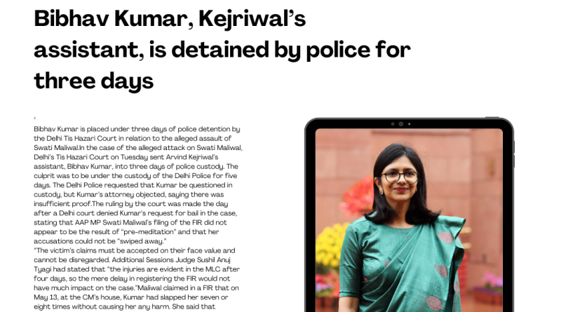 Bibhav Kumar is placed under three days of police detention by the Delhi Tis Hazari Court in relation to the alleged assault of Swati Maliwal.In the case of the alleged attack on Swati Maliwal, Delhi’s Tis Hazari Court on Tuesday sent Arvind Kejriwal’s assistant, Bibhav Kumar, into three days of police custody. The culprit was to be under the custody of the Delhi Police for five days. The Delhi Police requested that Kumar be questioned in custody, but Kumar’s attorney objected, saying there was insufficient proof.The ruling by the court was made the day after a Delhi court denied Kumar’s request for bail in the case, stating that AAP MP Swati Maliwal’s filing of the FIR did not appear to be the result of “pre-meditation” and that her accusations could not be “swiped away.”